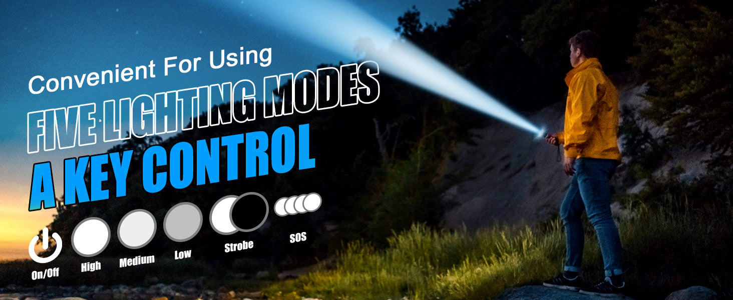 With 5 versatile lighting modes — High, Medium, Low, Strobe, and SOS — this flashlight adapts to every situation. From securing your home to guiding your family on late-night trails, its powerful beam ensures you’re always prepared. Whether it’s camping, hiking, or an unexpected emergency, you’ll have reliable light exactly when you need it most.