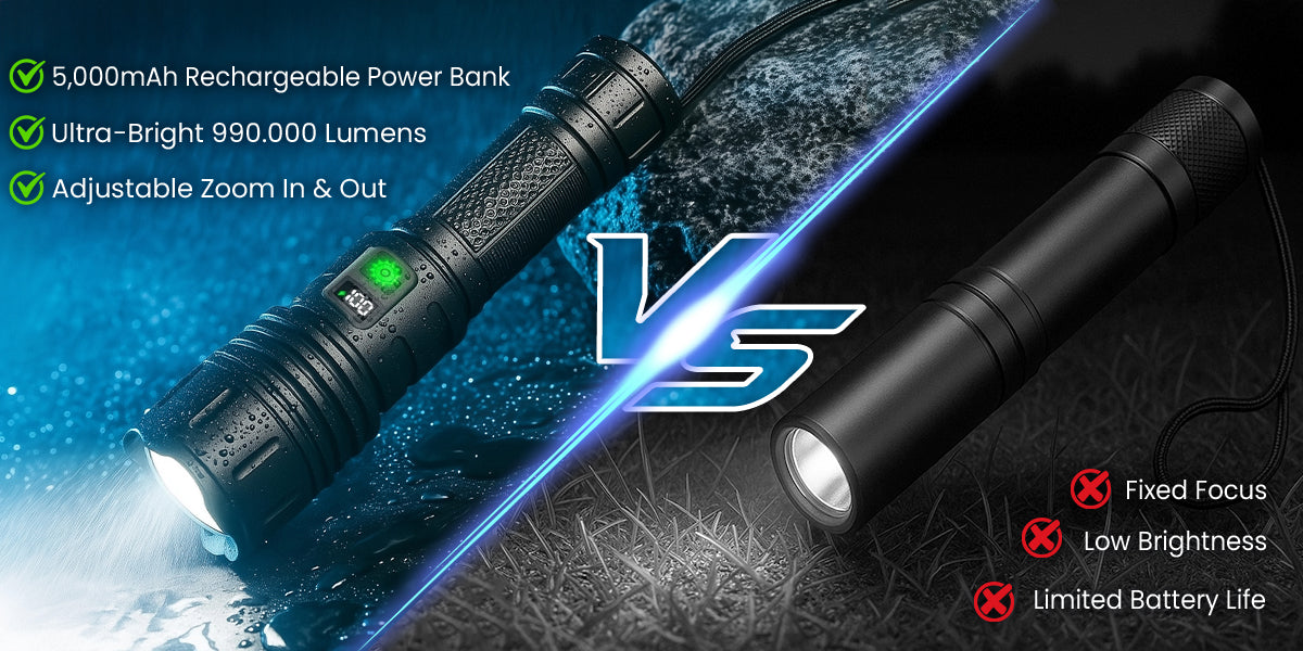 Gain precise control with the telescopic zoom on the TLOPA® 990000LM Super Bright Survival Flashlight. Effortlessly switch from a wide floodlight to a focused 3,280 ft long‑range spotlight, delivering super‑bright, focused illumination for camping, hiking and search & rescue.